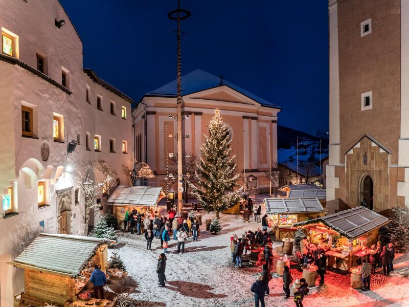 Acht Holzhütten, der Nikolausumzug und die Krampuslauf verzaubern den Dorfplatz von Kastelruth von Ende November bis Ende Dezember. Der Christkindlmarkt ist jeweils an den Wochenenden und Feiertagen im Advent geöffnet. Die Pfarrkirche Kastelruth, bekannt für ihren überdimensionalen Kirchturm, und das wundervolle Schlernmassiv sind die passende Kulisse dafür. Die kleinen Hütten bieten Handgefertigtes, inspierende Geschenkideen und heiße Getränke gegen die Winterkälte an. Oder wie wäre es mit den köstlichen Kastelruther Krapfen?