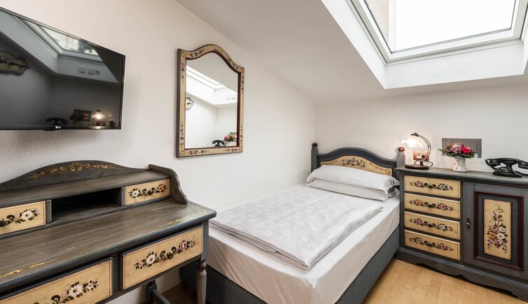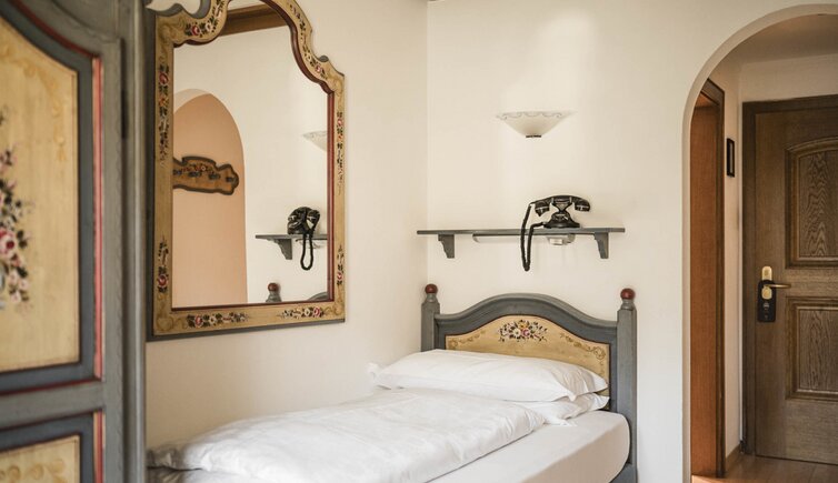 Kein Zimmer gleicht dem anderen! Eingerichtet mit klassischen Südtiroler Holzmöbeln verführt jedes einzelne mit seinen eigenen charmanten Details.
