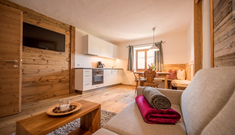 Die fünf Wohnungen „Fuhn“, „Grole“, „Trox“, Folta“ und „Lafod“ sind mit heimischen Naturmaterialien und mit viel Liebe zum Detail eingerichtet: Möbel aus Zirben-, Lärchen- und Fichtenholz, sowie naturbelassenen Holz- und Natursteinböden.
