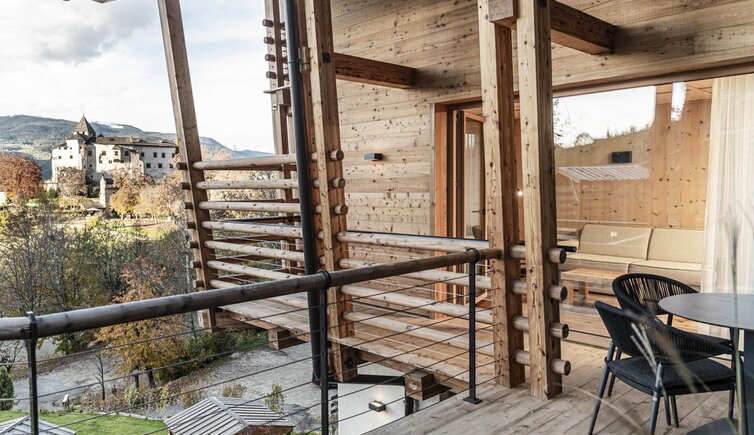 Die Luxus Ferienwohnungen sind warm und schlicht gestaltete Räume mit hohem Wohlfühlfaktor. Der Panoramablick auf das märchenhafte Schloss Prösels oder die umliegenden Berge ist umwerfend.