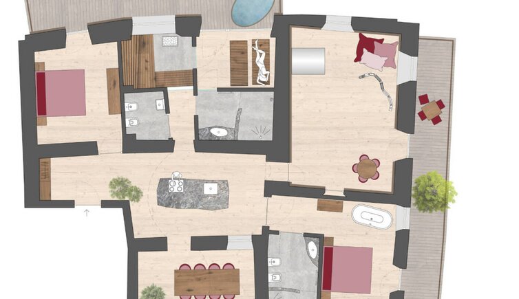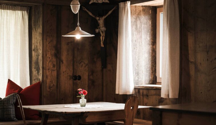 Umgeben von jahrhundertealten Mauern, warmem Holz und einer einmaligen Aussicht auf das imposante Schlernmassiv, wohnen Sie hier ganz anders – traditionell, herzlich und mit einem Hauch Nostalgie.