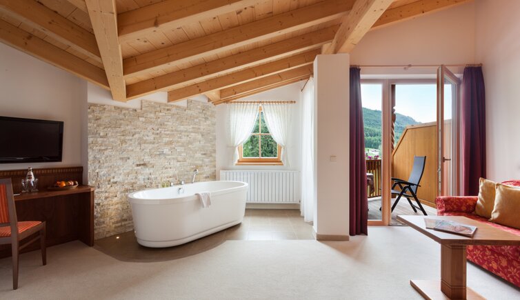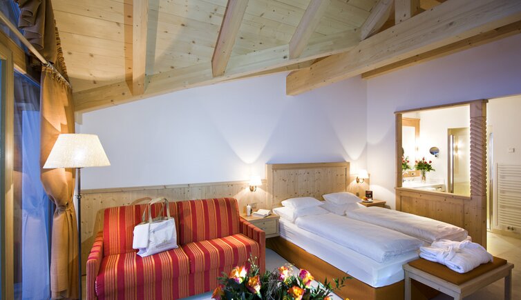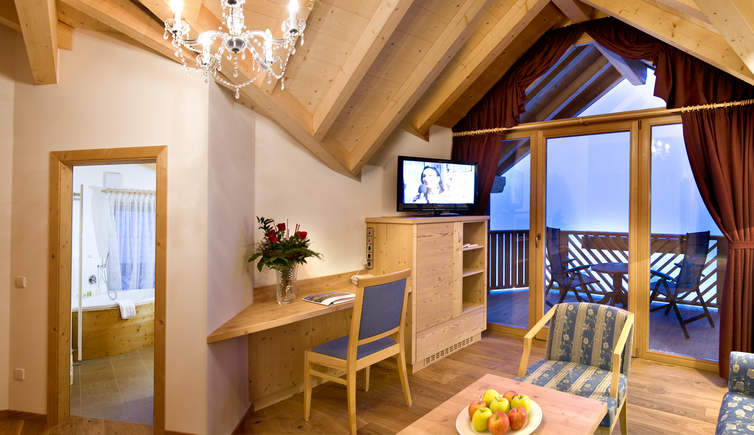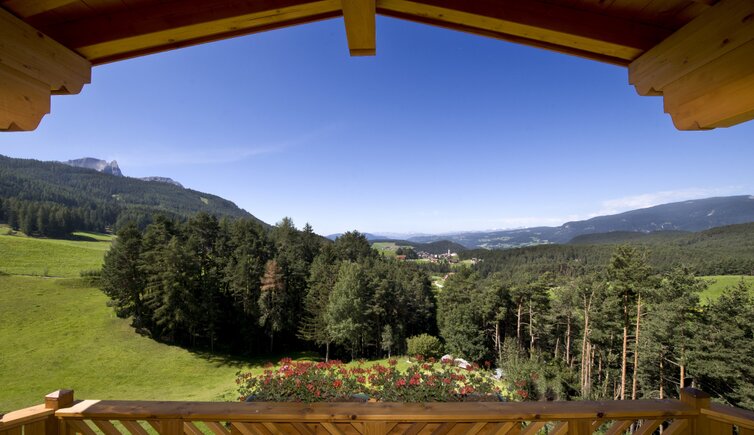 Die großen Fensterfronten sorgen für einen wunderbaren Panoramablick auf das Schlerngebiet, und auf den Balkonen atmen Sie die erfrischende Bergluft der Dolomiten.