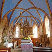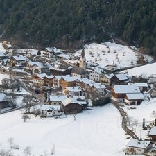 The village of Tisana, in German called Tisens, a component locality of the large-scale municipality of Castelrotto, lies on the sunny slopes in the west of the main locality Castelrotto village and has got some 170 inhabitants. The church at its centre is consecrated to St Nicholas. Worth noticing is above all the sky-blue ceiling in the nave. On the external walls, however, there is a huge fresco illustrating St Christopher.
