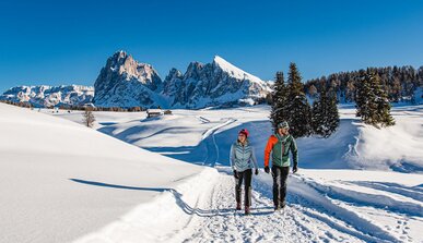 Enjoy a dream winter holiday on the Alpe di Siusi. Sparkling snowy landscapes, diverse ski slopes and relaxing moments in cozy mountain huts make your stay unforgettable.