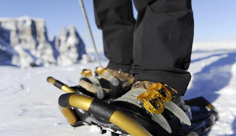 Experience a moderate snowshoe hike through the winter landscape of the Dolomites. We start at the valley station of the Marinzen cable car (the cable car is not used) and hike for about two hours to the Alpin Marinzen Hut, where you can stop for a break and refreshments. Afterwards, we return together to Kastelruth.