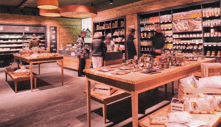 Tasting of polenta from Römerhof at the Südtirol Products Shop.