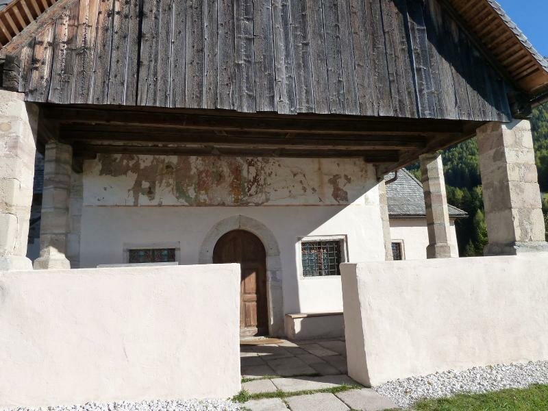 The choir and the partly visible frescoes at the external walls, however, were created in the 15th century. The latter depict the Adoration of the Magi and St. Michael with the scale. Other elements of the "Michaeler Kirchlein", how it is called in Tyrolean dialect by locals, were added in the 18th century: the frescoes inside the church, the altarpiece and the ceiling paintings.