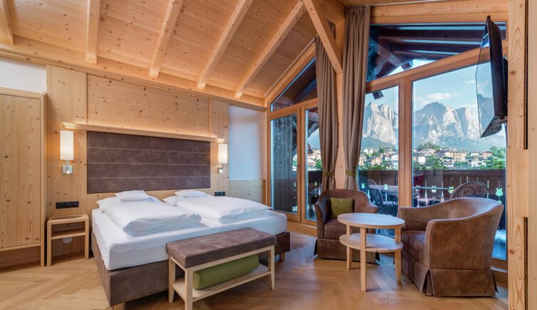 Once built as a spa hotel, from here you can enjoy a breathtaking view on the Sciliar, our local mountain, and the legendary South Tyrolean Dolomites.