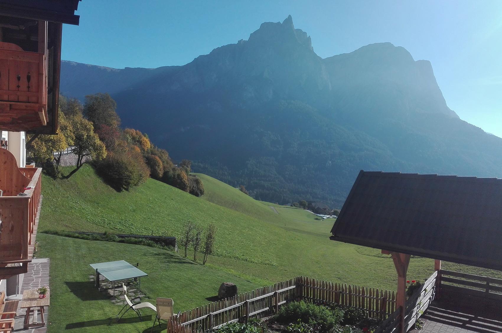 Il maso si trova in località San Valentino, in una posizione tranquilla e soleggiata a 1.275 metri di quota sopra gli abitati di Castelrotto e Siusi.