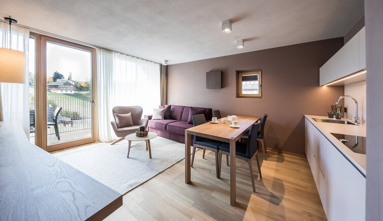 Gli appartamenti esclusivi offrono ogni tipo di comfort e dal vostro balcone potrete ammirare il panorama mozzafiato sulle imponenti cime delle Dolomiti. Abbandonatevi a piacevoli momenti di benessere nei appartamenti vacanze in montagna e nell’accogliente area benessere dotata di sauna e zona relax.
