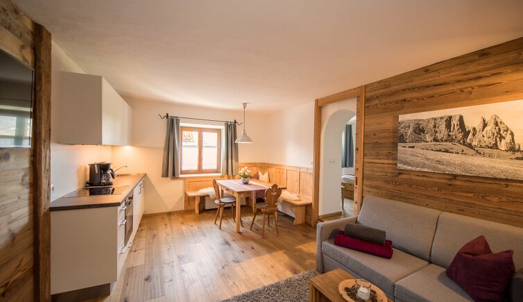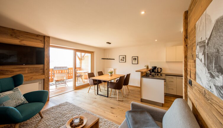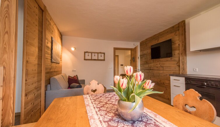I cinque appartamenti "Fuhn", "Grole", "Trox", "Folta" e "Lafod" sono arredati con materiali naturali locali e con grande attenzione ai dettagli: mobili in legno di pino cembro, larice e abete rosso, nonché pavimenti in legno naturale e pietra naturale.